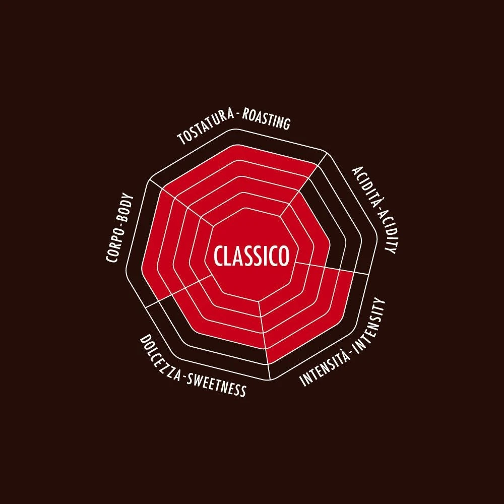 Il caffè in grani Classico è una miscela equilibrata, dal gusto delicato e persistente.