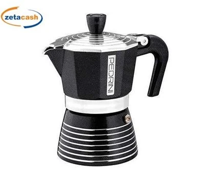 Caffettiera da 1 tazza infinity rock, colore antracite, con manico resistente, valvola di sicurezza, guarnizione in silicone atossico, lega d’alluminio alimentare, design e progettazione italiana.