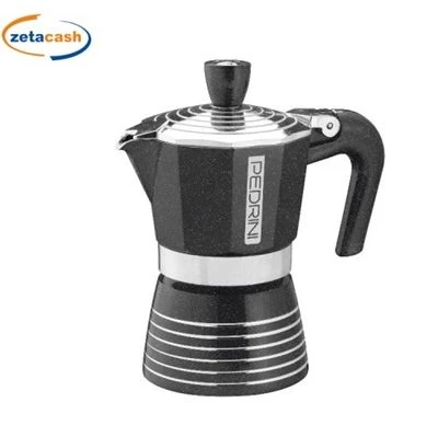 Caffettiera da 2 tazze infinity rock, colore antracite, con manico resistente, valvola di sicurezza, guarnizione in silicone atossico, lega d’alluminio alimentare, design e progettazione italiana.