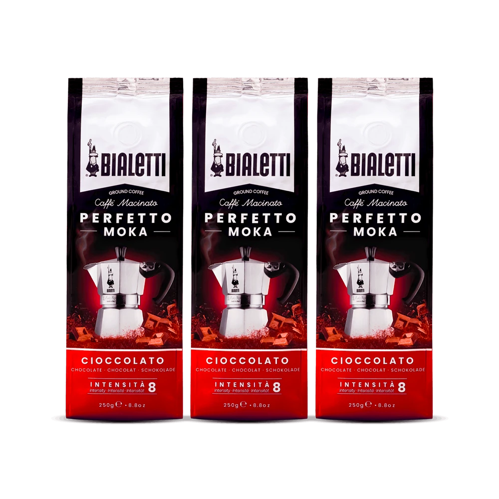Un caffè gourmet aromatizzato al cioccolato, con un sapore e un profumo inconfondili, messi ancora più in risalto da una struttura fine ed elegante. Bialetti ha perfezionato il suo caffè macinato, arrivando ad una combinazione perfetta di tostatura, macinatura e gusto. Perfetto Moka Cioccolato aggiunge a una tostatura media, il migliore cacao, per garantirti una miscela profumata e golosa. Il caffè macinato Bialetti, grazie alla scelta delle migliori materie prime, ad una miscelazione perfetta, e una torrefazione attenta, garantisce un connubio di sapori e profumi perfetto per essere gustato con la Moka.