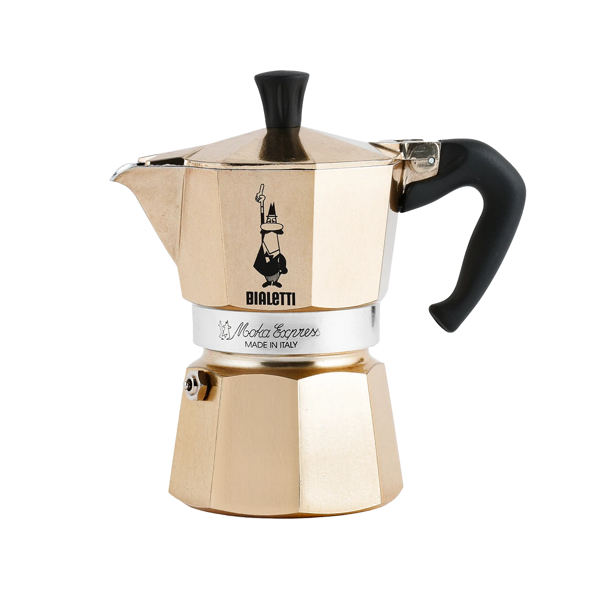 Nella nuova versione oro, Moka Express diventa un oggetto unico – da collezione – e da portare a tavola perrendere più elegante ed eslcusiva ogni pausa della tua giornata.