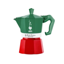 La versione Tricolore della Moka Exclusive vuole celebrare, anche nei suoi colori, il tradizionale rito italiano di preparare un buon caffè.