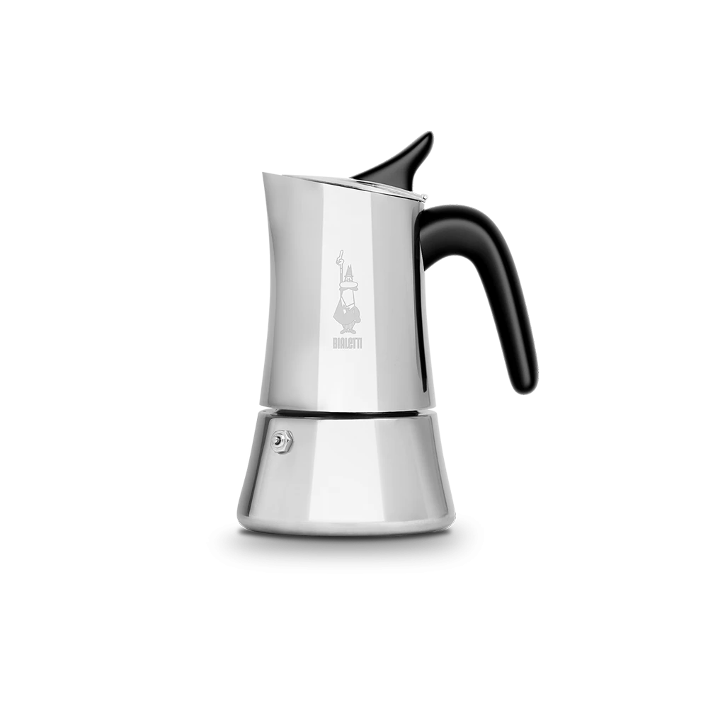 Bialetti Exclusive celebra il rito italiano del caffè con stile e innovazione. Moon Exclusive è una caffettiera con corpo ad alto spessore in acciaio inox 18/10 adatta anche all’induzione. Il manico soft-touch garantisce una presa sicura.