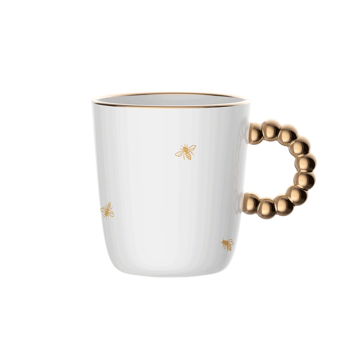 La “Mug Perle” unisce la raffinatezza del manico a perle all’eleganza del decoro fine e armonico delle api. Questa mug renderà le vostre pause uniche e raffinate.