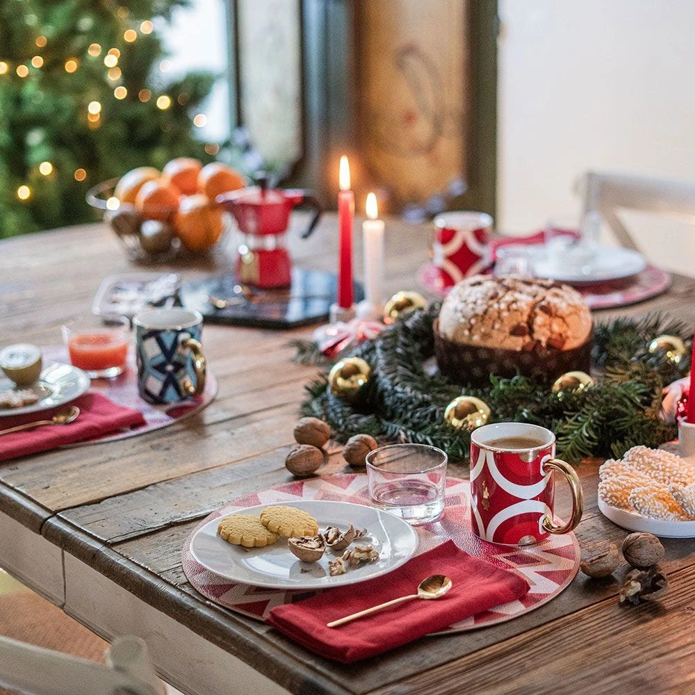 La Mug Rossa della collezione Tombola con i suoi ricchi dettagli dorati e le allegre e raffinate decorazioni blu intenso darà una marcia in più alla vostra colazione e alle vostre pausa relax.