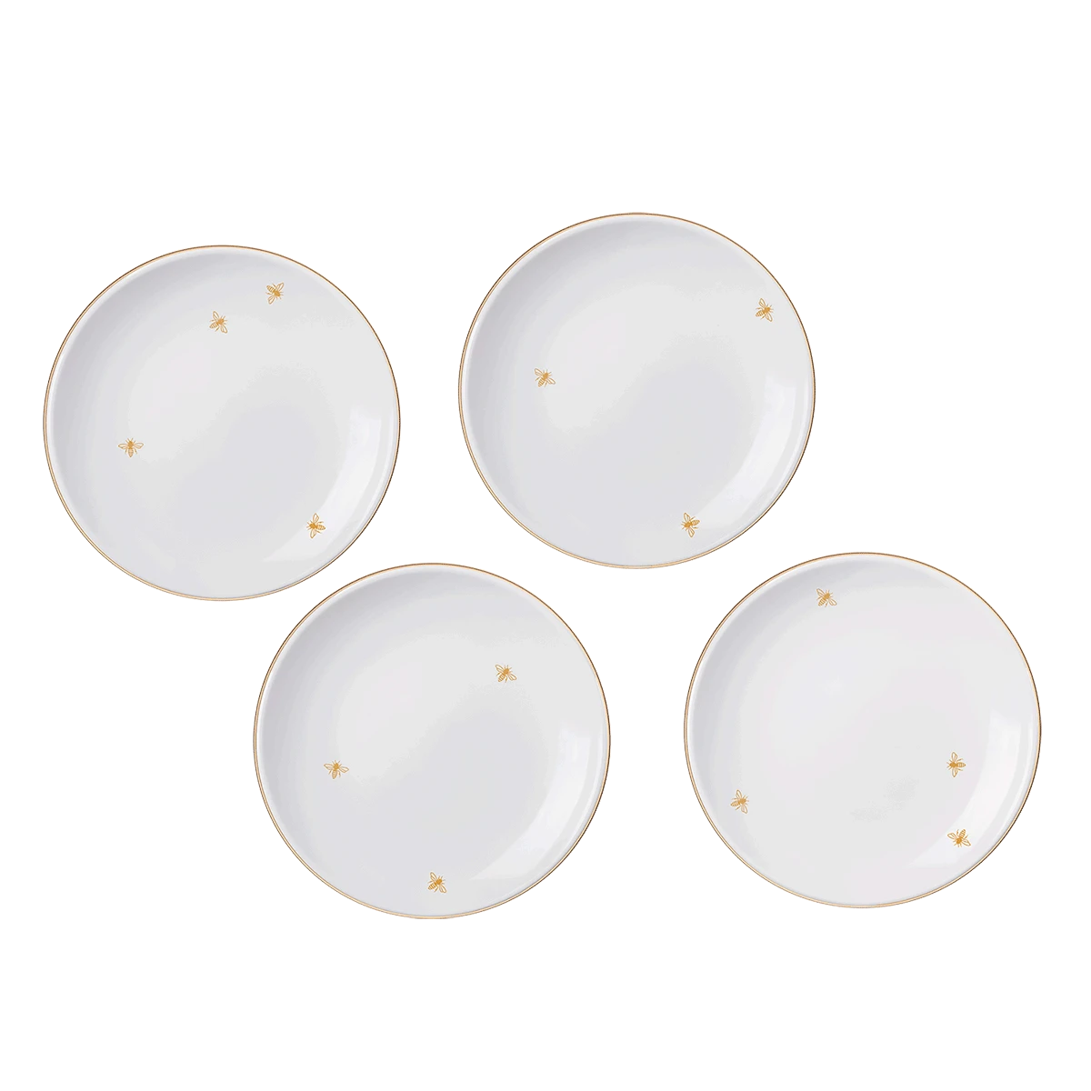 Il set 4 piatti dolce nella nuova collezione Oro delle Api, porta sulla tua tavola un tocco di raffinatezza e stile grazie alle delicate decorazioni dorate unite al bianco scintillante della porcellana.