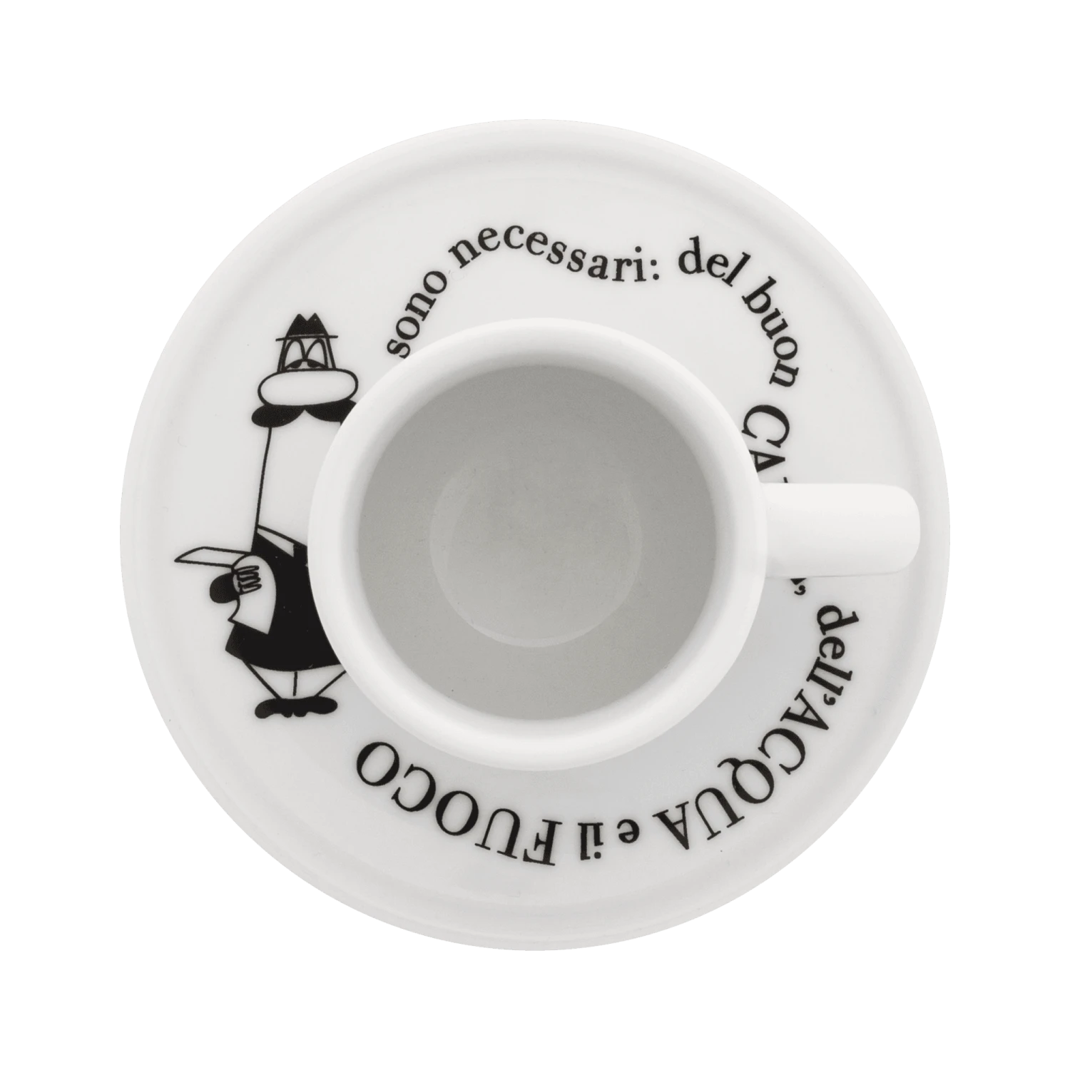 Le tazzine moka Carosello in porcellana bianca sono decorate con una storia, quella della preparazione del caffè con Moka Express, che percorre i piattini. La Tazzina moka in porcellana bianca è stata studiata da Bialetti per assaporare un delizioso caffè preparato secondo la vera tradizione italiana e solo con Moka Express, grazie alle sue linee morbide e armoniose. Capacità max: 80 ml