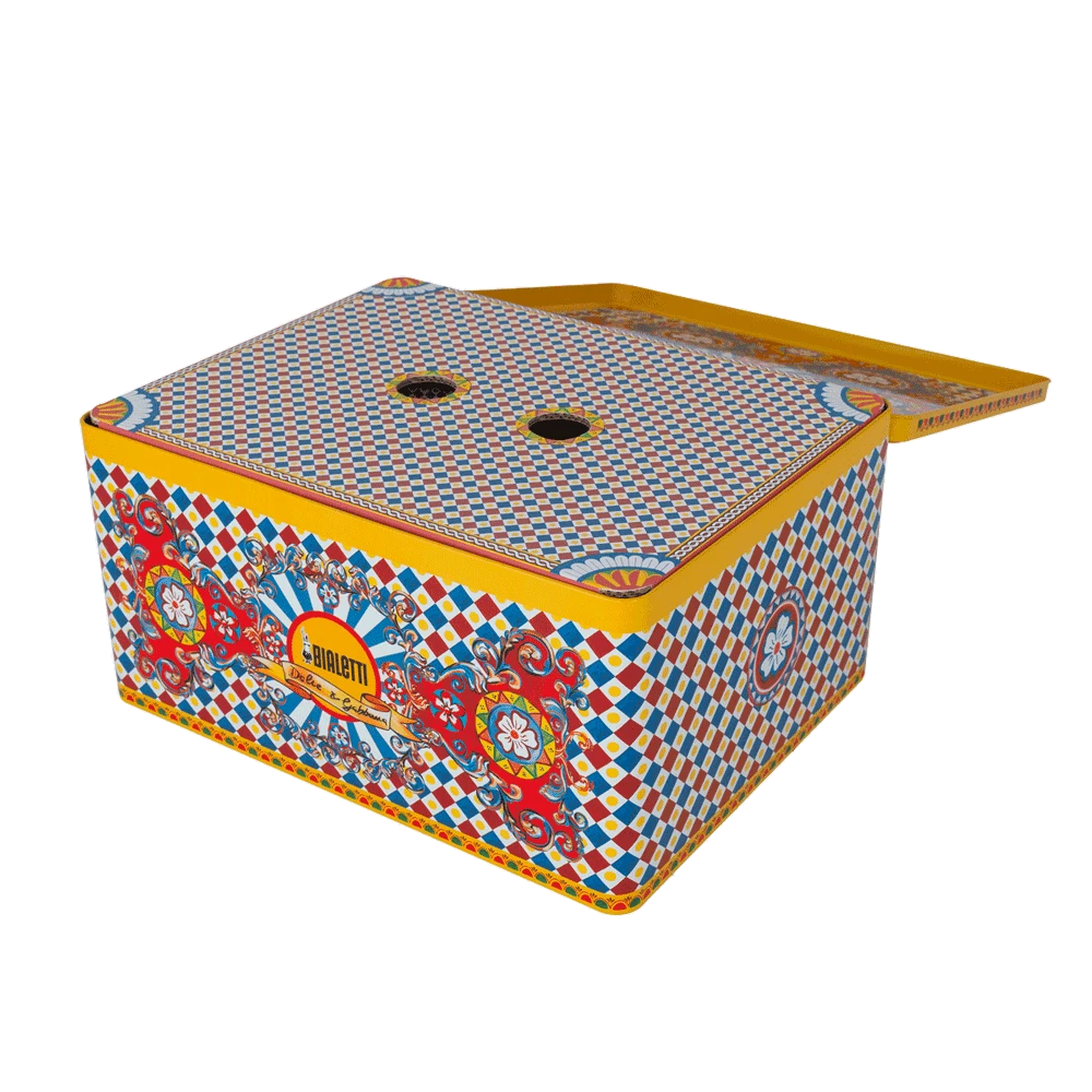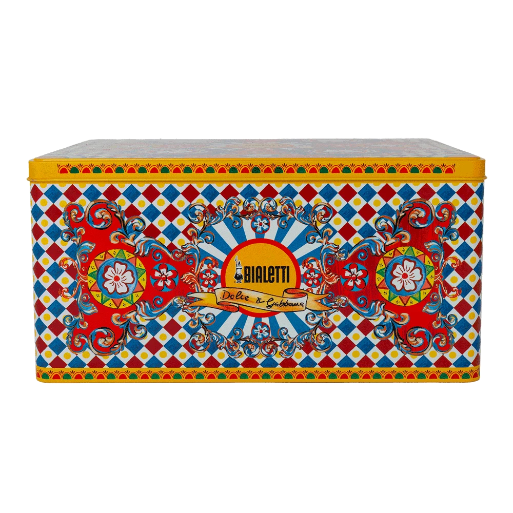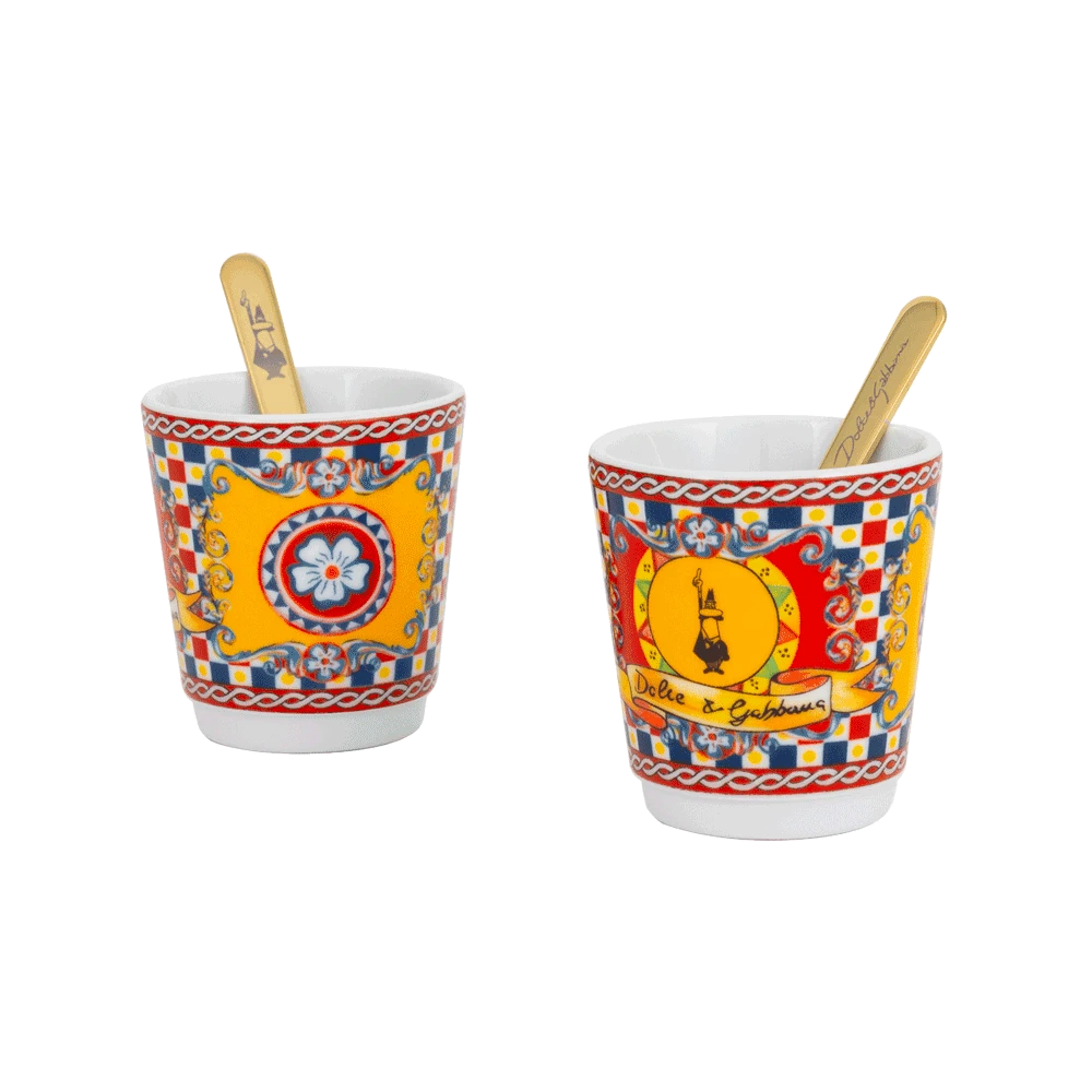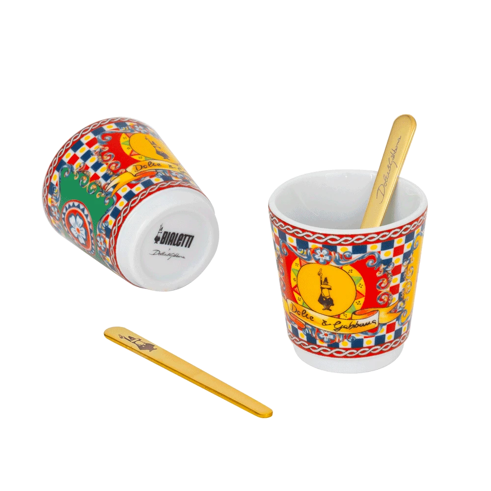 Due icone del Made in Italy si incontrano per celebrare la bellezza del rito del caffè italiano. Nasce così la preziosa box Bialetti Dolce&Gabbana composta dalla Moka Express Carretto Siciliano 2 tz, due bicchierini in porcellana e due palettine dorate.