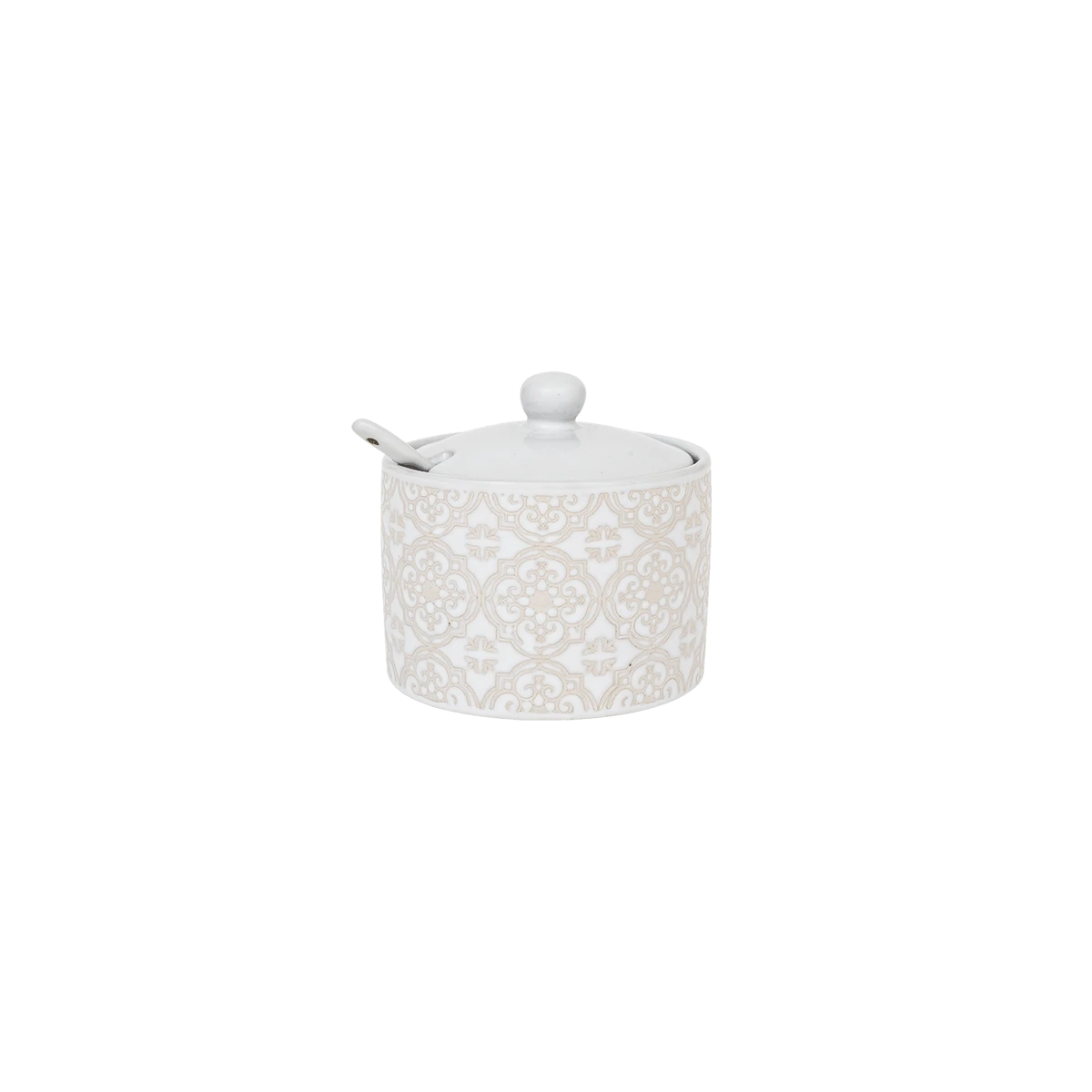 La zuccheriera con il decoro in rilievo che rievoca le trame delle tradizionali maioliche è perfetta per donare un tocco di eleganza e originalità alla tua tavola e alla tua cucina.